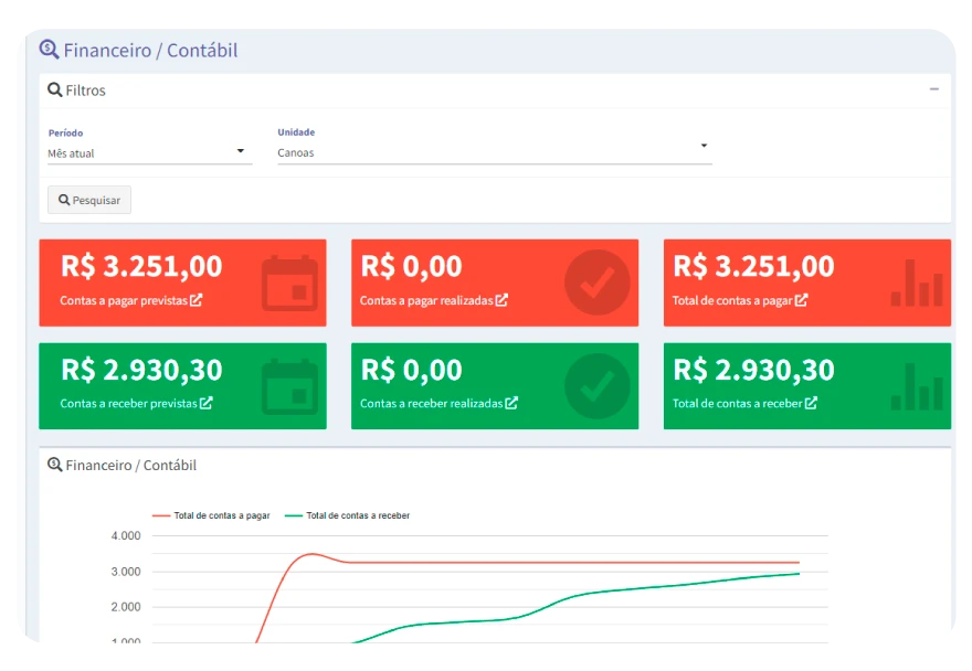 Quem disse que precisa gerar relatórios todos os dias? Acompanhe sua gestão através de gráficos atualizados em tempo real.