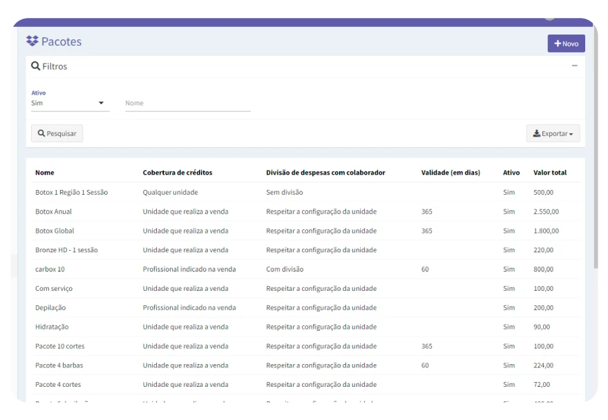 Com os pacotes você vende uma quantidade de serviços antecipados e, principalmente, acompanha o saldo de serviços na carteira do seu cliente, inclusive as datas de validade de cada pacote!